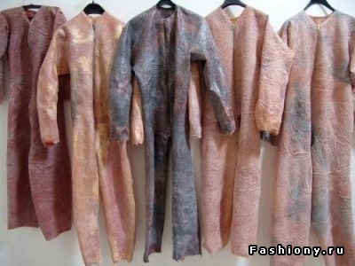 Французский дизайнер Оливье Гуле уже много лет работал над созданием высокопрочного материала, по виду и качеству похожего на человеческую кожу. Наконец, ему это удалось, назвал он свое детище SkinBag. Материал синтетический, но настолько реалистично имитирующий кожу человека, что даже бросает в дрожь. На текстуре даже можно увидеть прыщи, родинки и мозоли. Модели – куртки, сумки, ремни, ошейники, комбинезоны, юбки, выполнены по бесшовной технологии, а по желанию клиента на изделие даже можно будет нанести татуировку. Дизайнер уверяет, что одежда эта настолько удобна, что станет просто продолжением организма человека и тот, кто решится носить подобное, просто уже не будет ее замечать и ощущать, как собственную кожу.