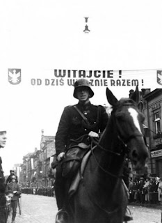 Рукопожатие польского маршала Эдварда Рыдз-Смиглы и немецкого атташе полковника Богислава фон Штудница на параде «Дня независимости» в Варшаве 11 ноября 1938 года. Фотография примечательна тем, что польский парад особо привязывался к захвату Тешинской Селезии месяцем ранее. На параде специально прошла колонна тешинских поляков.